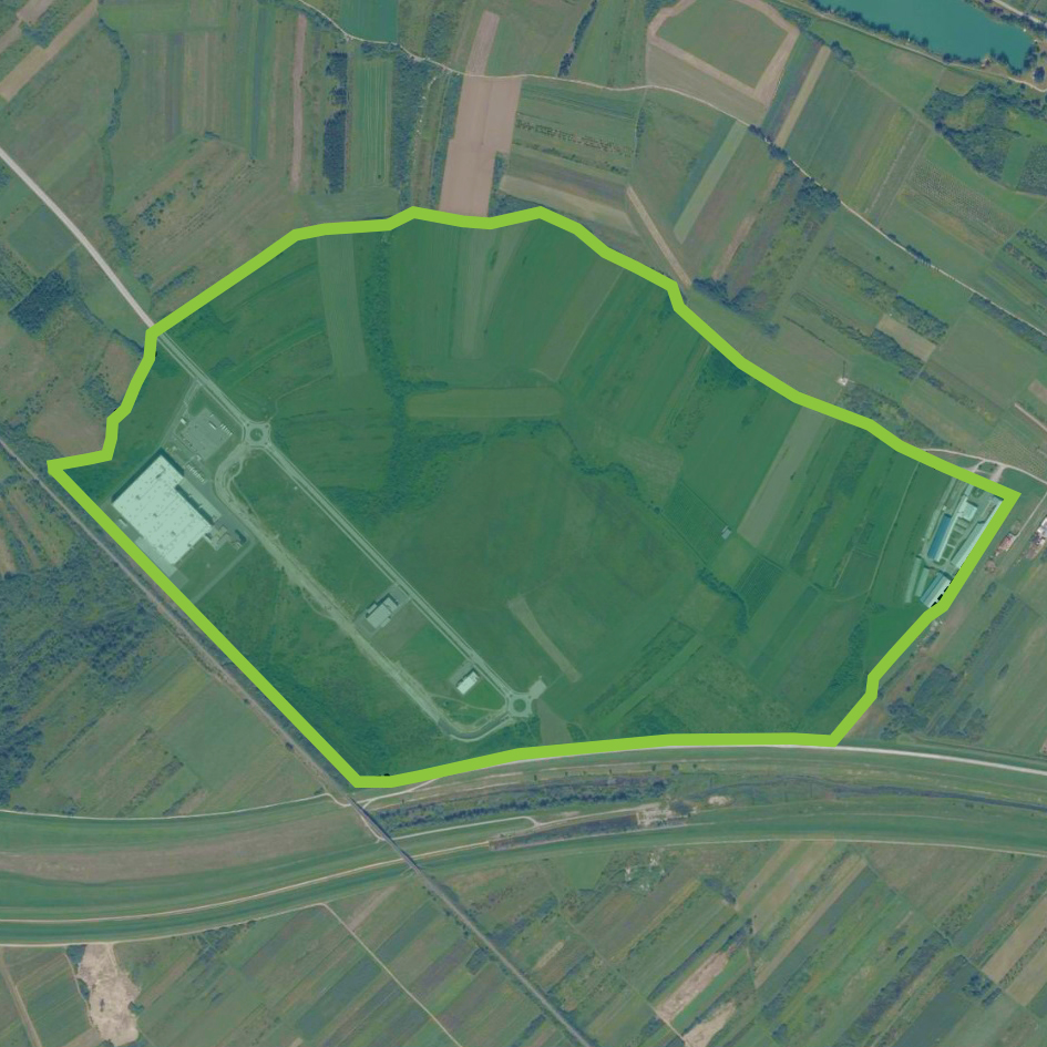 The Zone is in Velika Gorica, the sixth largest city in Croatia. It extends south of the Franjo Tuđman Airport. It is 2 kilometres from the entrance to the Zagreb-Sisak highway (A11), and 4 kilometres from the train station in Velika Gorica. Roads have been built in the Zone. According to spatial planning documentation, the Zone covers an area of almost 110 hectares. Investors are provided with connection to the electricity, water, and sewage network.